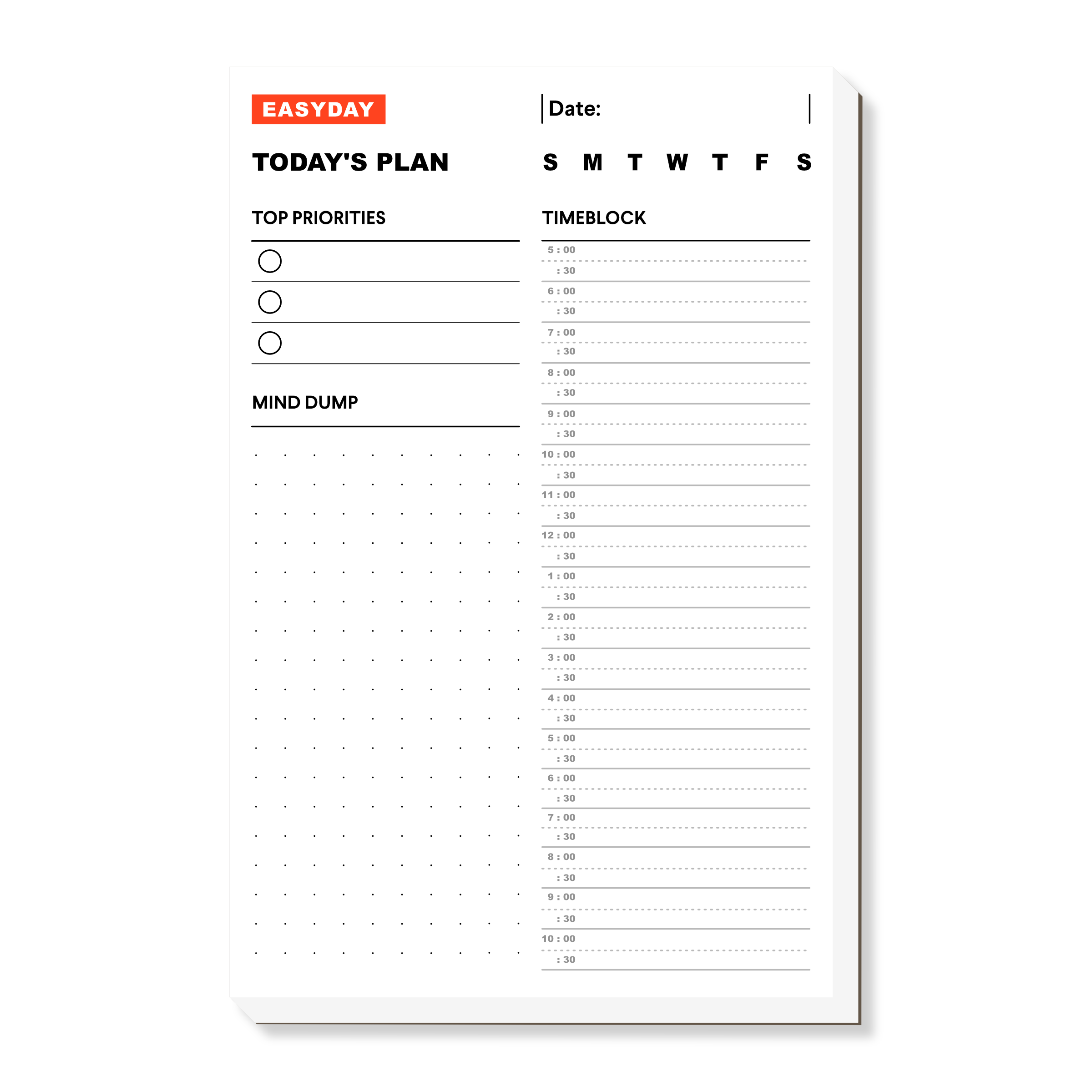Timeblocking Pad with 50 tear-off sheets. Prioritize and execute.